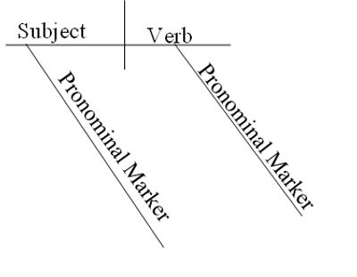 Ha ki senten, ngi shem ba ki noun kim lah ban ïeng marwei khlem ka jingdon ki pronominal marker (ki ktien ba wan shuwa ki noun) kum ka, u, i, bad ki. Kine ki proniminal marker ki wan ruh shuwa ki verb bad ki ïamynjur bad ki pronominal marker kiba wan shuwa ki noun ha ka gender (jinglong shynrang lane kynthei) bad number (singular ne plural). Ha ka nuksa haneng, ka ktien ki ka treikam kum u pronominal marker namarba ka wan shuwa ka noun khynnah bad shuwa ka verb ïarisa.